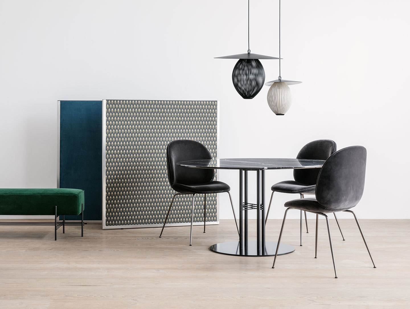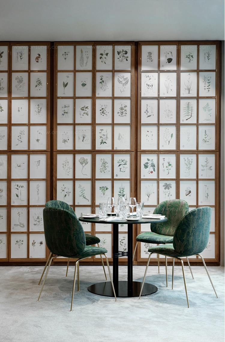 TS圆柱餐桌三个高度,其特征是细长的金属腿和交叉细节,统一到中心柱,专为巴黎Maison du Danemark的Flora Danica餐厅设计的装饰桌。 作为这个宏伟的空间,桌子代表了斯堪的纳维亚极简主义与全球优雅。 TS Column Table为私密用餐,社交和氛围氛围设定了框架,重点放在真实的材料选择和精心制作的工艺上。