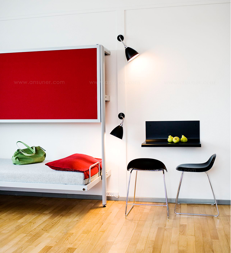 Bestlite BL6壁灯有一个高度可调臂,以改变高度的光与阴影,可以倾斜90°从水平到垂直。遮阳帘也可旋转360°。这个灯可以使用所提供的插头硬接线。