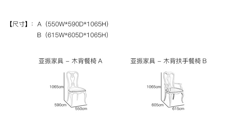 亚振家具 - 木背餐椅 产品尺寸/示意图