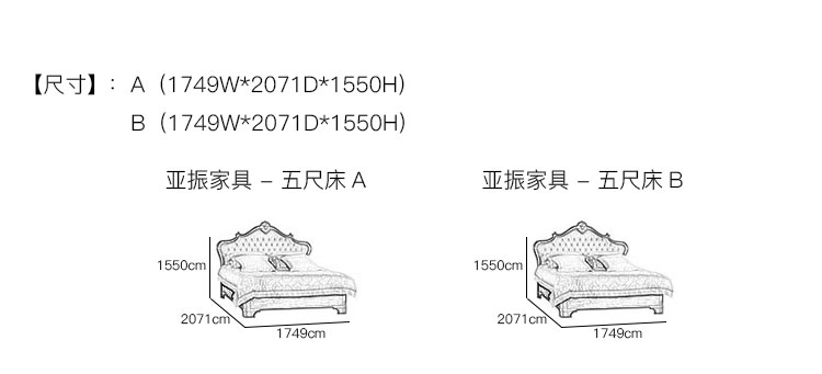 亚振家具 - 五尺床 产品尺寸/示意图