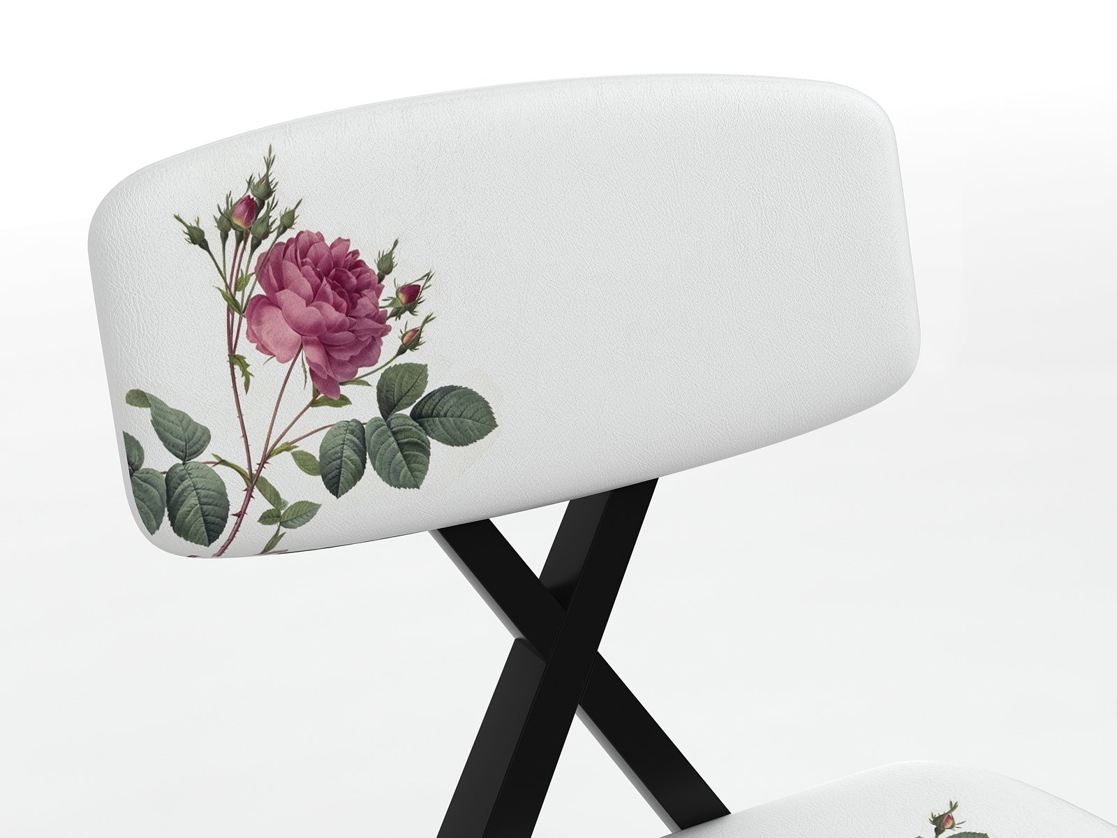 由Nika Zupanc设计的X椅子与标志性的“X”形状相得益彰,表现了背部支撑,座椅和靠背柔软的线条,丰富了新的经典花卉装饰。