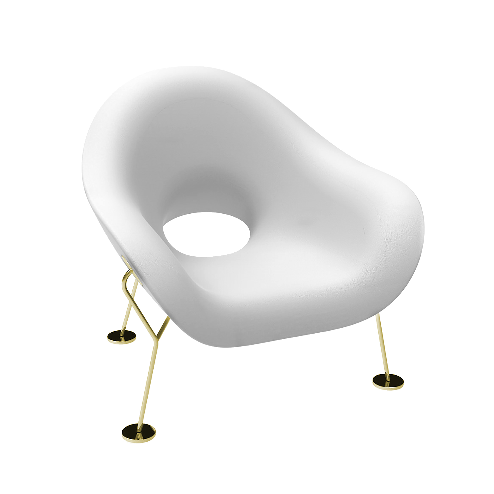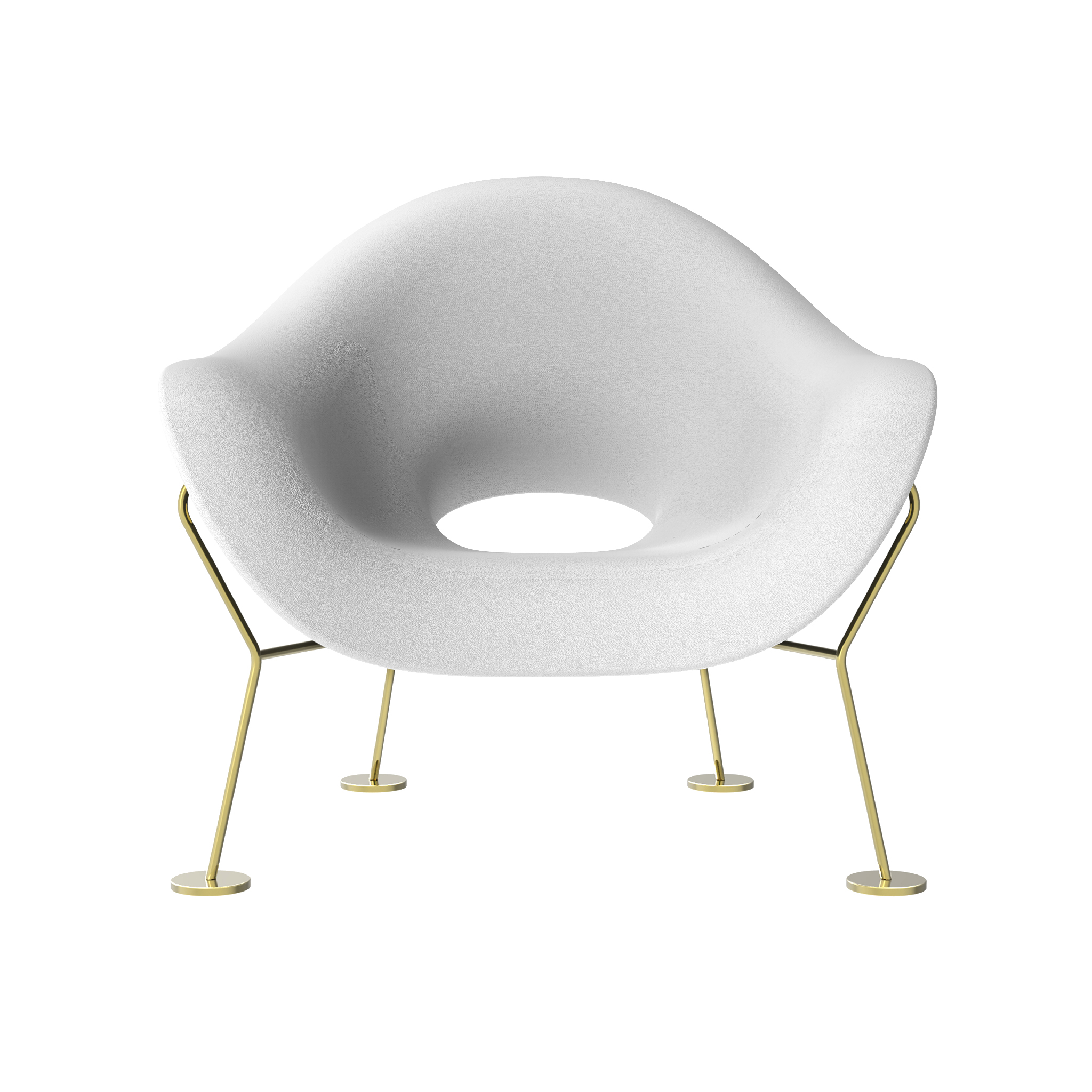 由Andrea Branzi签名的Pupa扶手椅同时具有敏捷和性感。 它倾斜在轻质金属框架上,使体积漂浮在空间中。外型为铬框,内饰为金框。