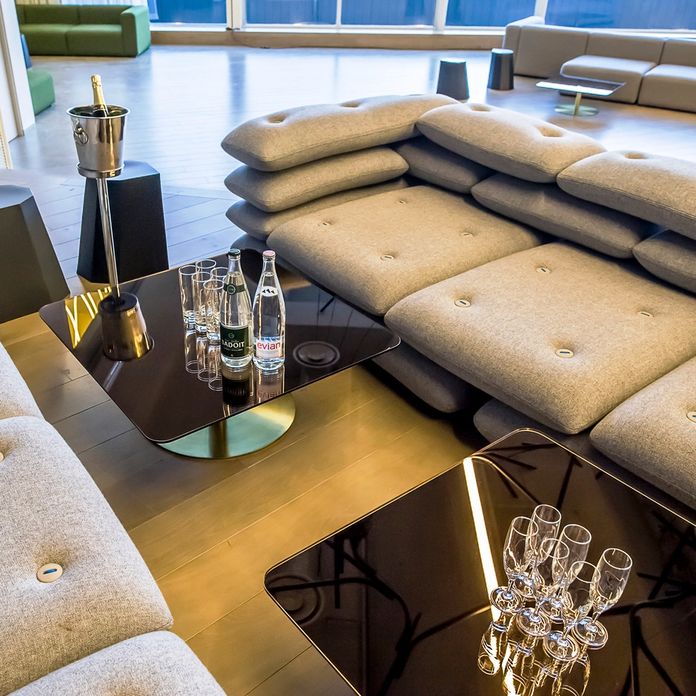Flash桌可在三个高度和形状,作为理想的咖啡桌或茶几。矩形的版本可以悬臂在低矮的沙发扶手上。