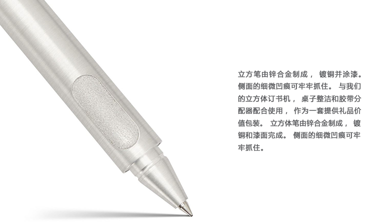 立方体笔由锌合金制成,镀铜并涂漆。 侧面的细微凹痕可牢牢抓住。 与我们的立方体订书机,桌子整洁和胶带分配器配合使用,作为一套提供礼品价值包装。立方体笔由锌合金制成,镀铜和漆面完成。 侧面的细微凹痕可牢牢抓住。 与我们的立方体订书机,桌子整洁和胶带分配器合作,作为一套提供,并赠送礼品包装。
