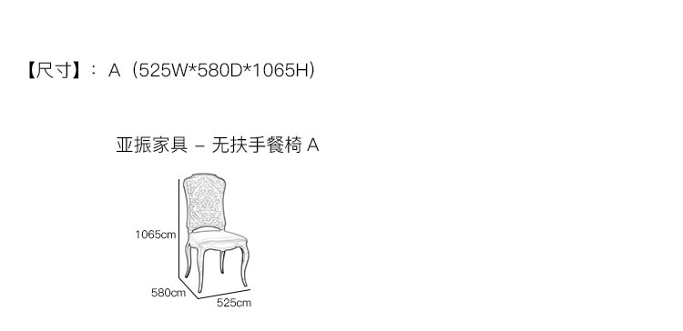 亚振家具 - 无扶手餐椅 产品尺寸/示意图
