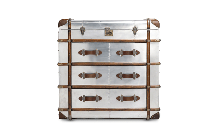 "慵懒、我行我素、精致、时尚,还有那么点怀旧的味道,Timothy Oulton家居的产品就是用这些无可替代的特点,征服了各国的英伦家具爱好者们。重提浪漫时代的长长的豪华海上航行,Globetrekker 系列的灵感来自Timothy Oulton于1914年在一个古董市场发现旅行箱,他深深的被复杂细节和美丽的黄铜板的旅行箱迷住了,Oulton拆解了那个古色古香的旅行箱并进行重新设计出一系列作品,它涵盖的灯表、 箱子、 咖啡桌和书柜等集合。捕获真正的魅力,还原精致工艺的旧古董皮箱的精髓,通过怀旧的贴纸饰面样式,采用老木、优质的老式皮革和黄铜铰链,通过精湛的手工处理完成了这套系列。