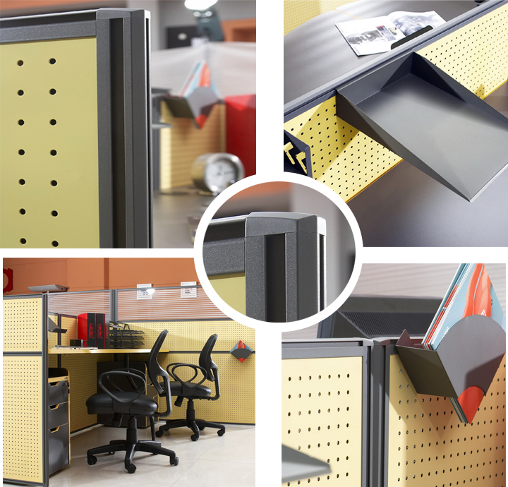 ※   屏风90度和180度连接,整合四人位背对背型,简单,便于沟通和洽谈!
