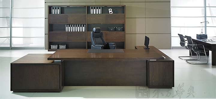 ※  类似款大班台展示,它简洁利落的设计、款式与质素并重,正好符合今日办公室家具的高品位要求,工作桌面宽阔适用,桌前并设有落地式档板;配合隐藏式电线槽更可方便线路管理独有内斜桌边及45°角直立式聚氨酯台脚设计。