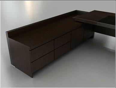 班台副柜配置有电动旋转线盒    抽屉具有自弹装置,无拉手设计