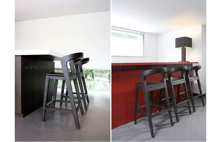 Sustainable,comfortable bar stool.Thanks to its sexy and elegant design this barstool can decorate each kitchen table.The rounded backside operates perfectly as arm rest.The feetrest comes with stainless steel cover.