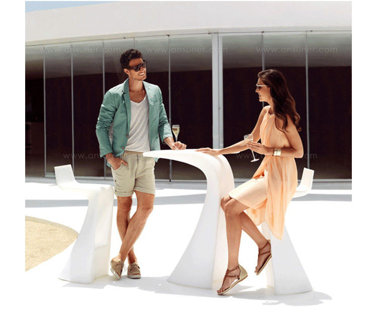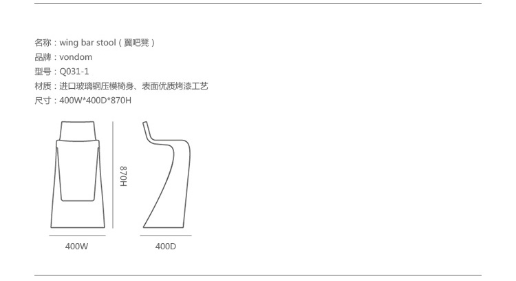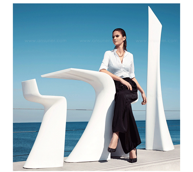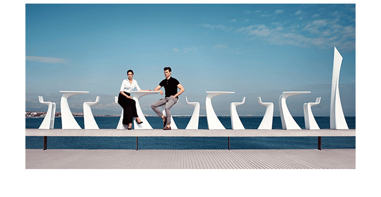 "翼系列包含翼台和翼吧凳,由设计大师oaquín Torres和Rafael Llamazares设计,它造型以一种动态的方式将直线和曲线编织在一起。这些极端曲线和角度,在最新的体系结构中,已经达到了家具设计典范,通过运用自由的、 微妙的、 有机的线条,以运动的形态,分离本身刚度。这些都是大胆的创新,构成了巨大的视觉冲击,令人印象深刻,达到雕塑和动态意义。"