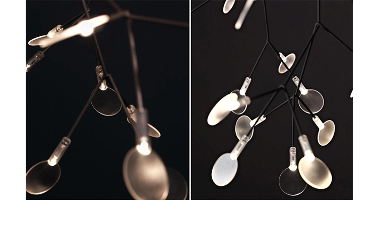 The decorative LED lamp inspired by the Heracleum Plant now comes in two sizes. Theleaves ramify from a branch creating a very technixal,natural structure,By using the technique of coating conductive layers.Adesign not possible with normal wires.