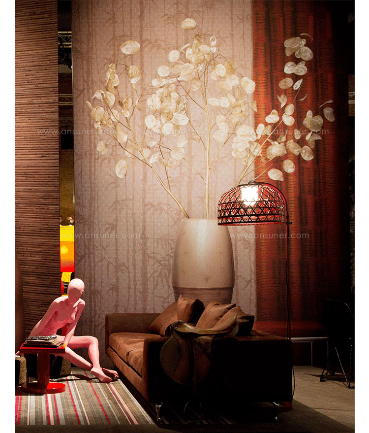 "Once upon a time an asian emperor received as a gift a nightingale. The charming bird sang so beautifully that the emperor always wanted it by his side. He placed the nightingale a majestic hand woven bamboo cage in the imperial chambers and listened, enchanted, to the magic sound" Material: Bamboo rattan cage, aluminum frame and glass diffuser Additional: Each cage is woven by hand And therefore has a unique character.