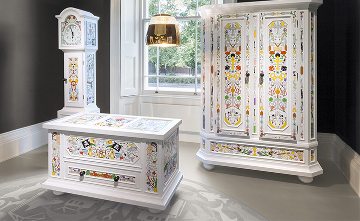 A magic mirror and the power of crystals transform a simple shell into an endless light bouquet of flowers”, Marcel Wanders Valentine’s shiny, refined black, white, gold & chrome shell encloses and frames a meadow of light and sparkling glamour. With thestyle of a precious jewel, Valentine is designed to guard his heart of crystallized flowers, frosted in time. A treasure as perfect anduntouchable as lovers‘ memories. As light and revealing as a first date. As exciting as the initial glimpse of a carefully wrapped gift