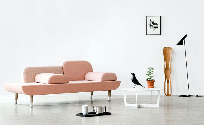 Toward is a comfortable sofa that allows the user to lounge in multiple ways.By merging the normal use of an armchair,a chaise longue and a tete-a-tete,the design emerged.Toward is a base with a mattress and two back rests in different sizes.The two loose and interchangeable cushions further opens up for a versatile appearance and function.To achieve a unique product with high aesthetics,a lot of consideration went into combining the color nuances and texture of the textiles chosen.The sofa comes in five color combinations:light gray,dark gray and brown,pink and dark blue shades with shoes in solid brass or aluminum.Every color combination consists of 6 different color nuances and textures from Kvadrat Textiles.