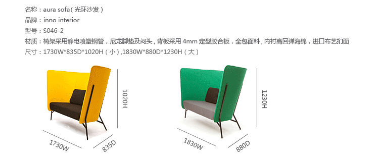 双座1730 w | 835 d | 1020 h