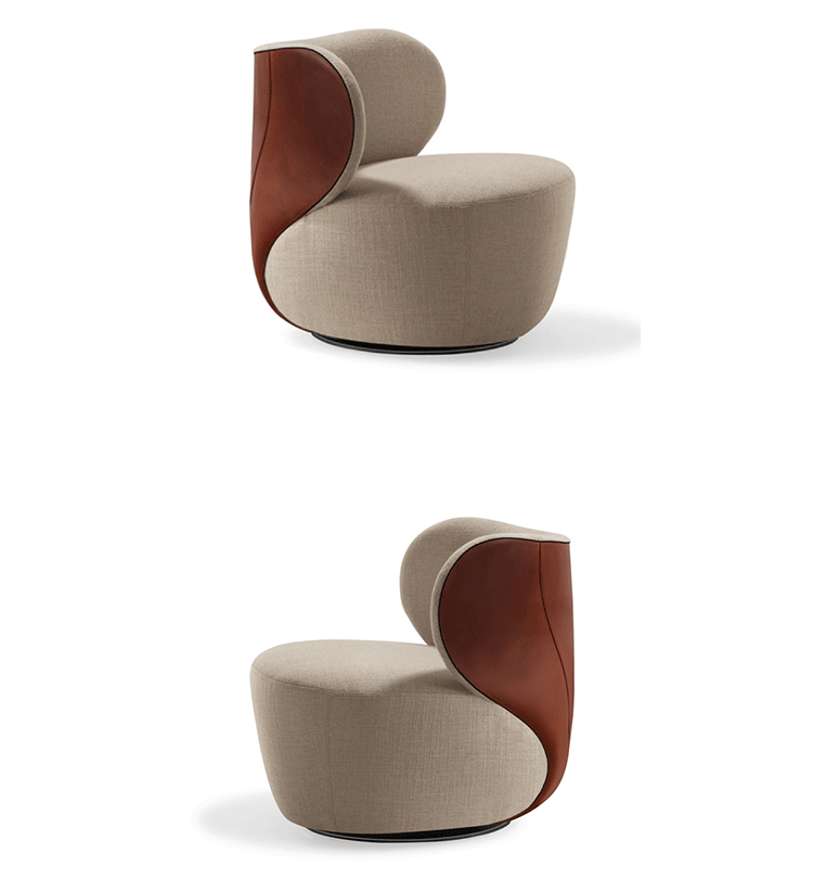 "宽敞和圆润,优美的曲线设计正是Bao Sofa(Bao沙发)最吸引人的地方。华丽的雕塑艺术的靠背,皮革拼凑在一起形成一个球状的样子。流畅的线条--简洁和优雅。扶手椅上结合材料,同时保持它们鲜明︰优雅马鞍皮革座椅背,纺织着天然织物。Bao Sofa(Bao沙发)就像给您一个欢迎的拥抱。新颖独特扪面方式:织物和皮革组合,扶手及整个座椅完全覆盖在织物或皮革。"