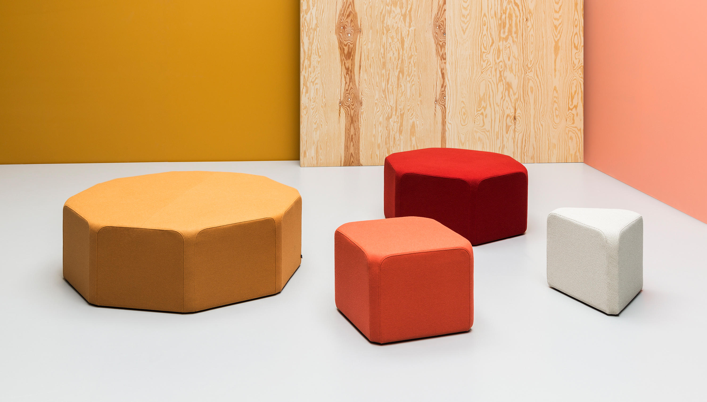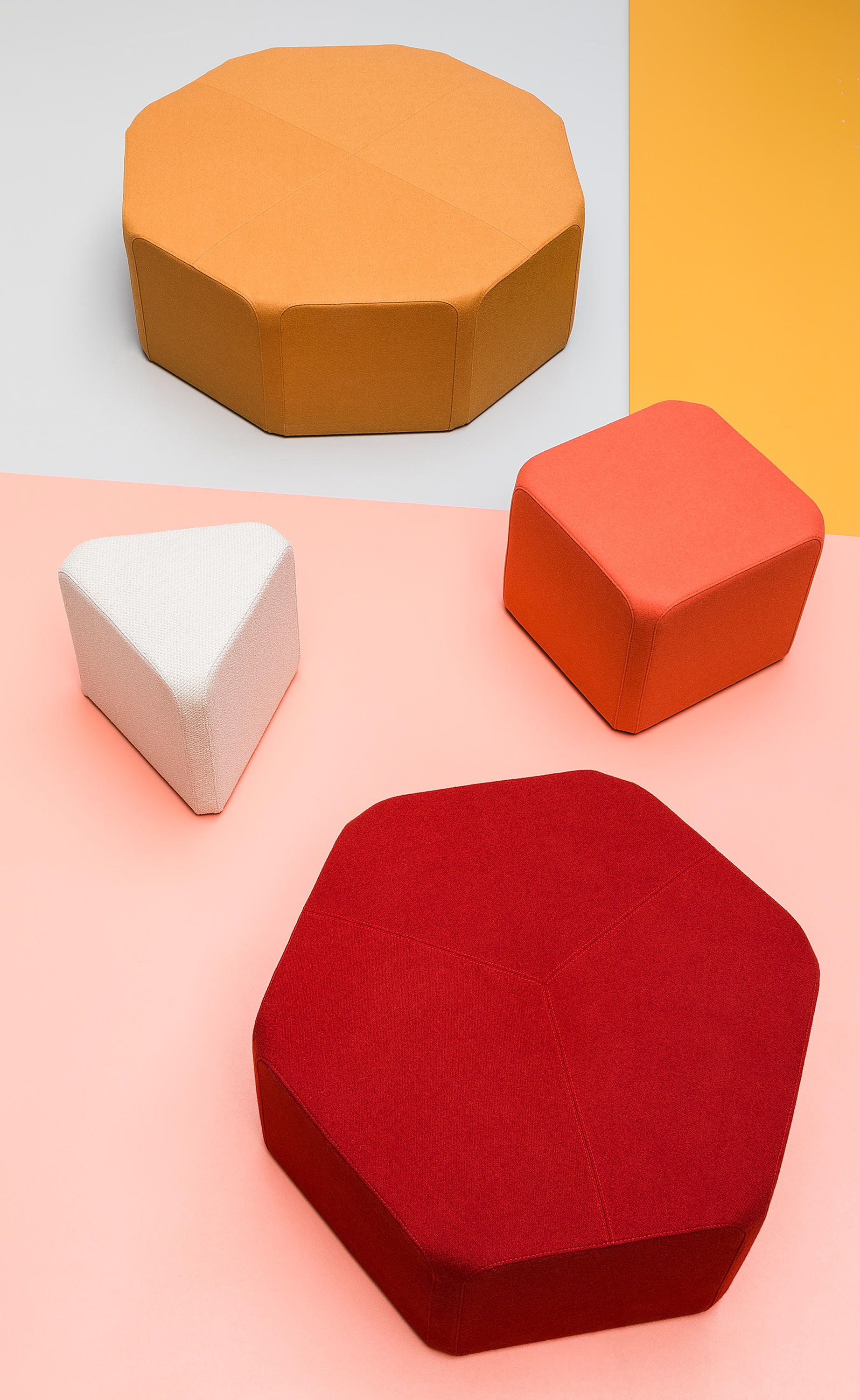 x40是一个有多边形基础的4个小袋。座椅是由三角形,方形,六边形和八边形设计的。所有固体共享的元素是一个圆角矩形,宽40厘米。由于有相同的侧边,袋子可以放置在各种各样的安排中。基于这一独特的重复的质量和广泛的NOTI面料颜色,用户可以尝试各种各样的安排的可能性。