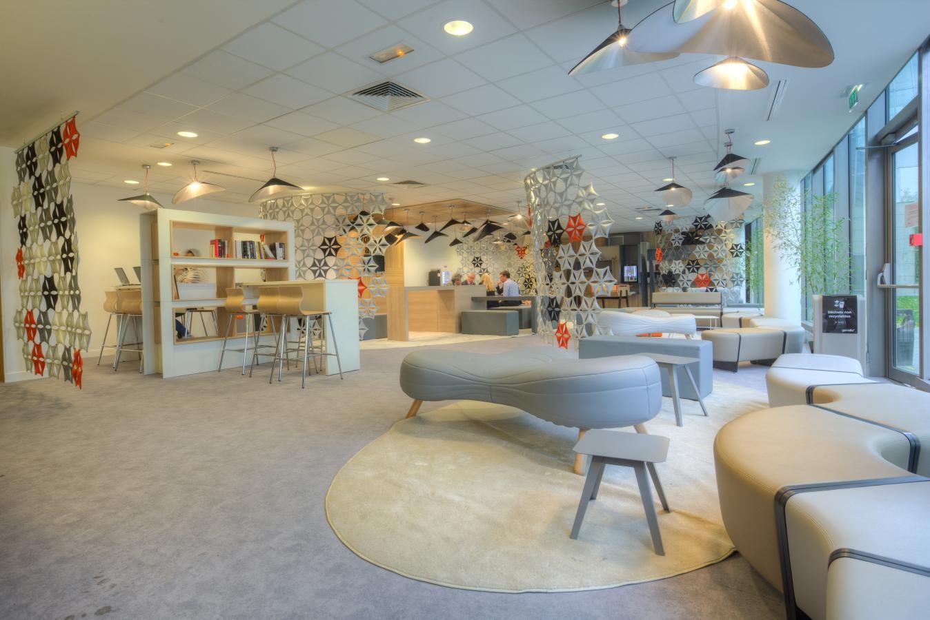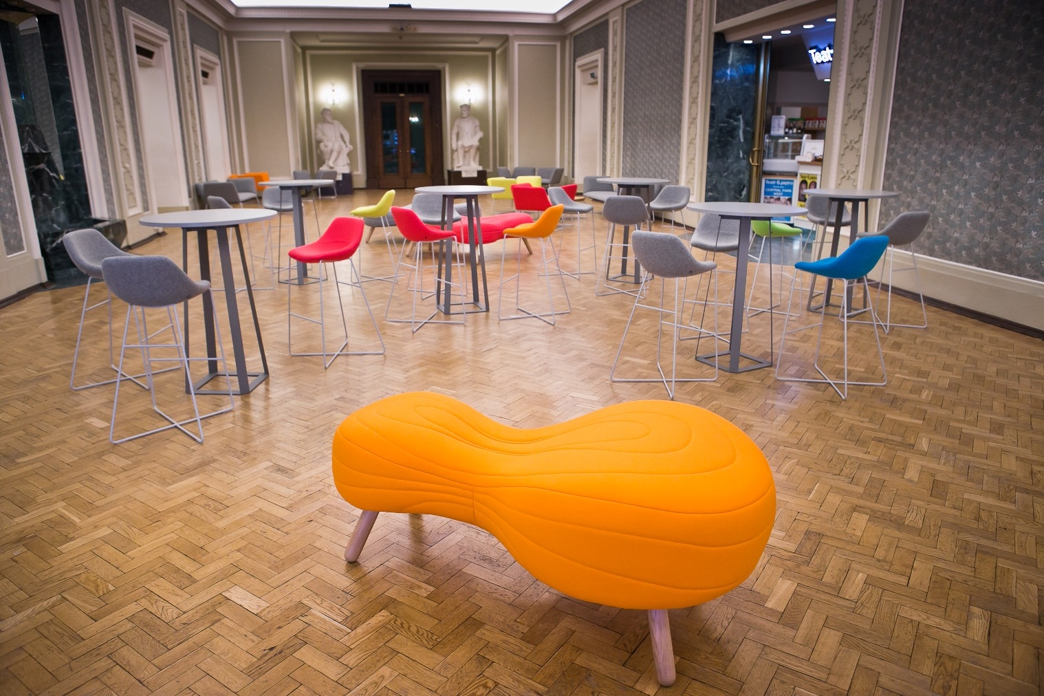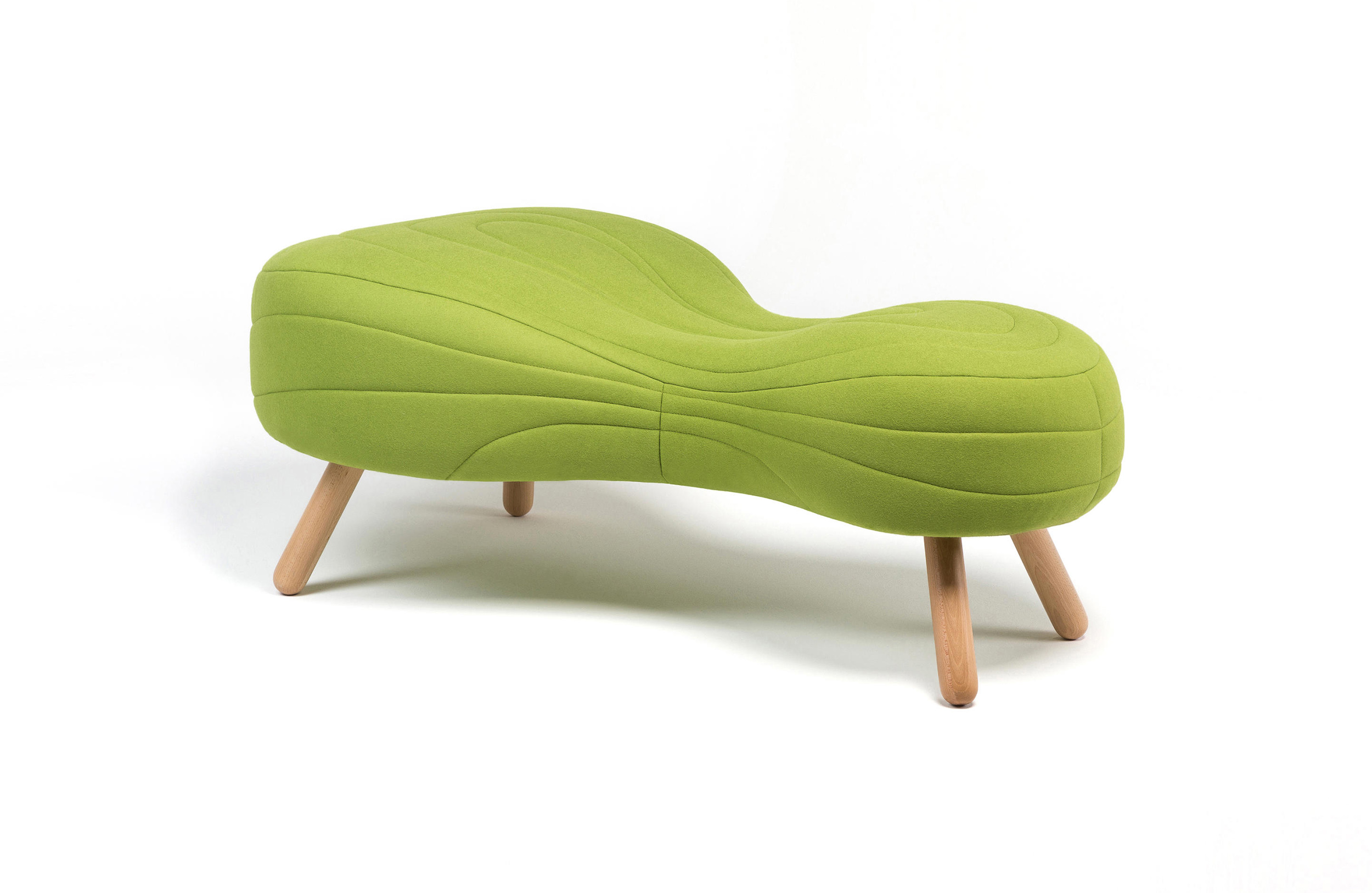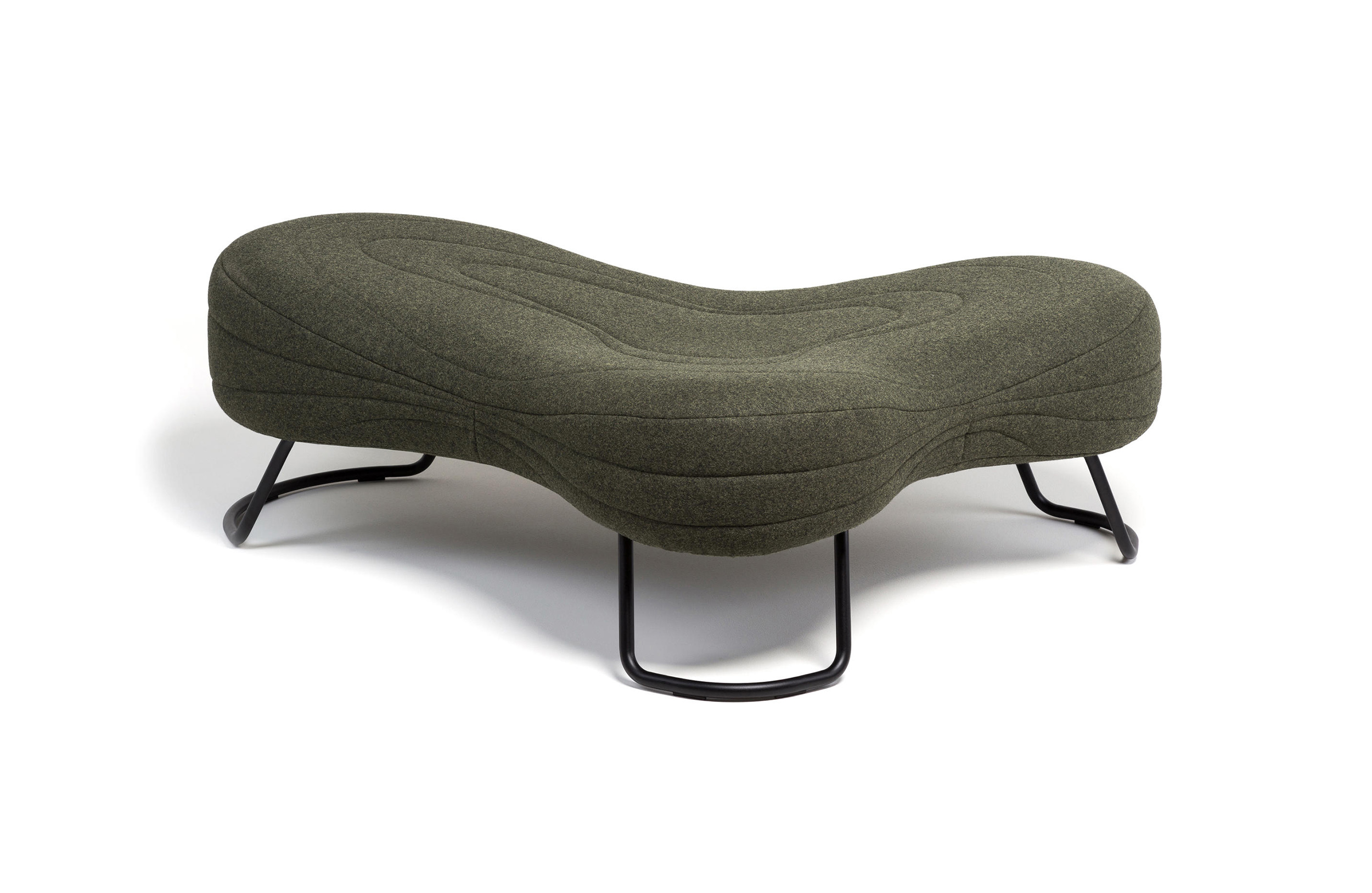不规则的、变形的沙发形式允许创造一个不寻常的公共空间。这些模块是用木制的腿,小的隐藏的腿,这样沙发看起来就像是直接躺在地上,或者悬挂在绳子上,给人一种漂浮在空中的感觉。设计的主要特点是有可能在功能和外观方面提供不同的基础。这些座椅有两人位和三人位型号可供选择。