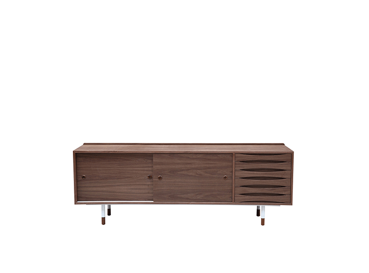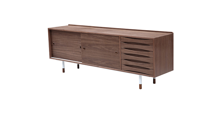 arne vodder mid century modern credenza(arne vodder世纪中期现代书柜)是Kardiel公司制作的经典实木家具,具有世纪中期的现代风格。Arne Vodder书柜拥有三个隔间部分,一个隔间由6个滑动式抽屉组成,其余的两个隔间由2个中等及较低的架子格子组成,能够完成最大化存储。这些抽屉都能够通过金属滑动的滑动门打开或关闭。制作采用精选MDF板基材胡桃木或水曲柳木皮贴面、胡桃实木或水曲柳实木脚架、环保油漆喷涂、做工精湛。