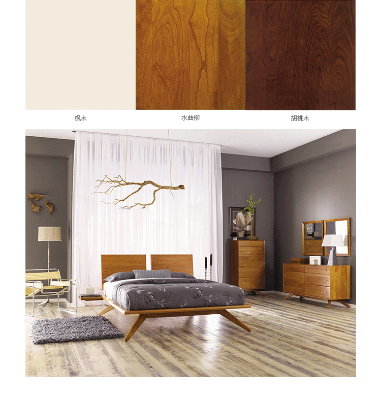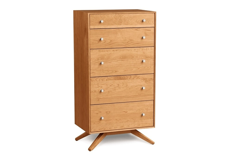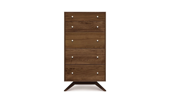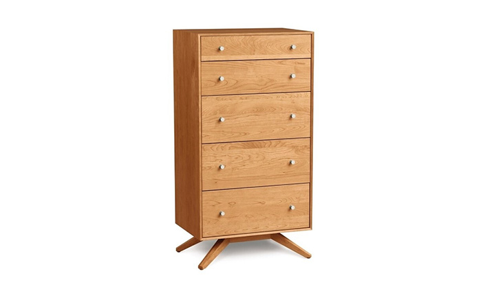 astrid 5 drawers dresser(阿斯特丽德5抽梳妆台)是Copeland Furniture公司astrid实木梳妆台系列之一,宽大的八字形脚架非常吸引人注目,制作并非易事,它其实是一个大工程,同时能引发无限期望和激情,5个平滑抽屉,可以给与提供许多存储空间。制作采用精选MDF板基材、进口美洲胡桃或水曲柳或枫木皮贴面、实木脚架、环保净味油漆喷涂、做工精湛。