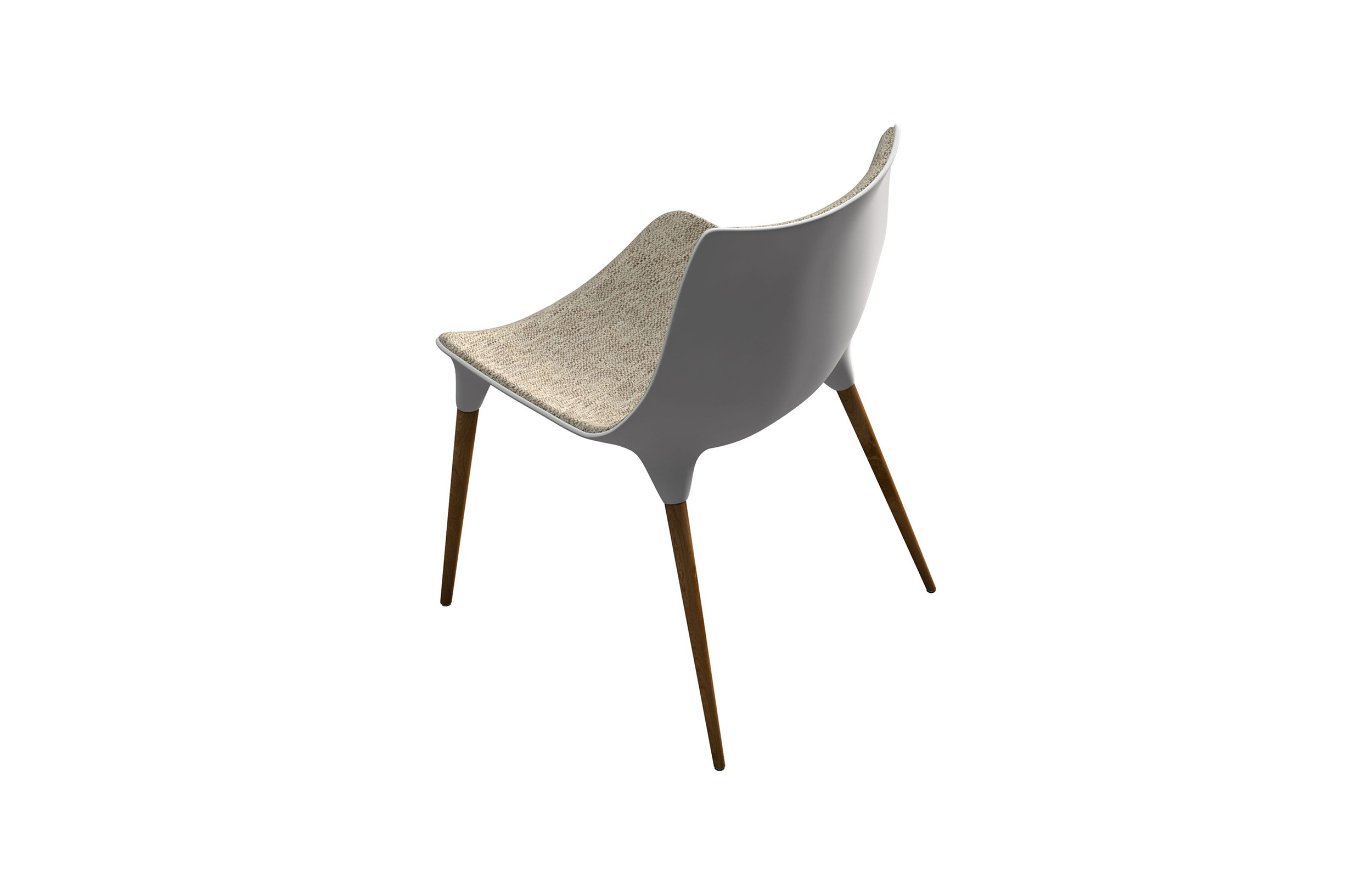 屡次获奖的朗汉姆餐椅以现代曲线为特色,闪耀着中世纪的光芒。椅子的特点是玻璃纤维桶座结构,有巴西木或漆钢腿。在粘胶纤维的衬垫里做了填充垫。