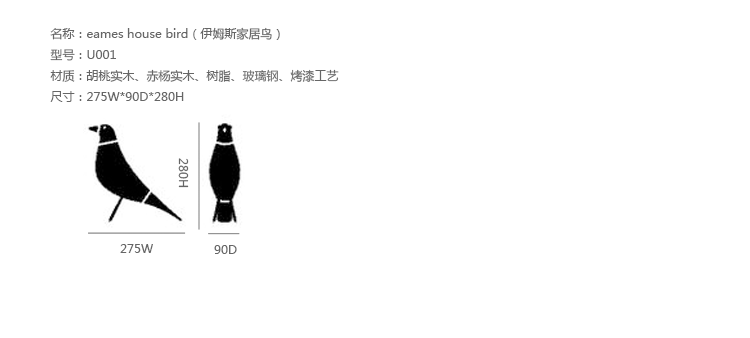 这只由德国家具大厂 Vitra 重新推出的小黑鸟,是由设计师夫妇 Charles & Ray Eames,在 1910 年出外旅行时所带回,小小的身影,静静的在 Eames 家中的客厅守候着,至今 50 年来,仍然那样的令人钟爱,随着设计的复古浪潮,知名家具品牌 Vitra 以赤扬木重新打造,再涂上亮漆,为小黑鸟带来了崭新而亮丽的风貌, 成为设计师争相收藏的珍贵艺术品。