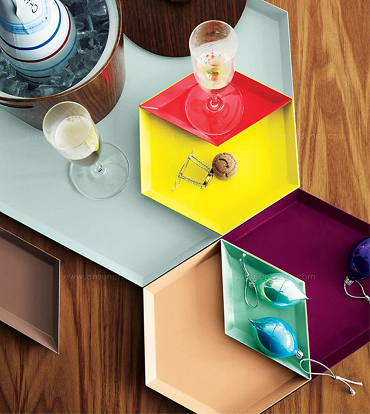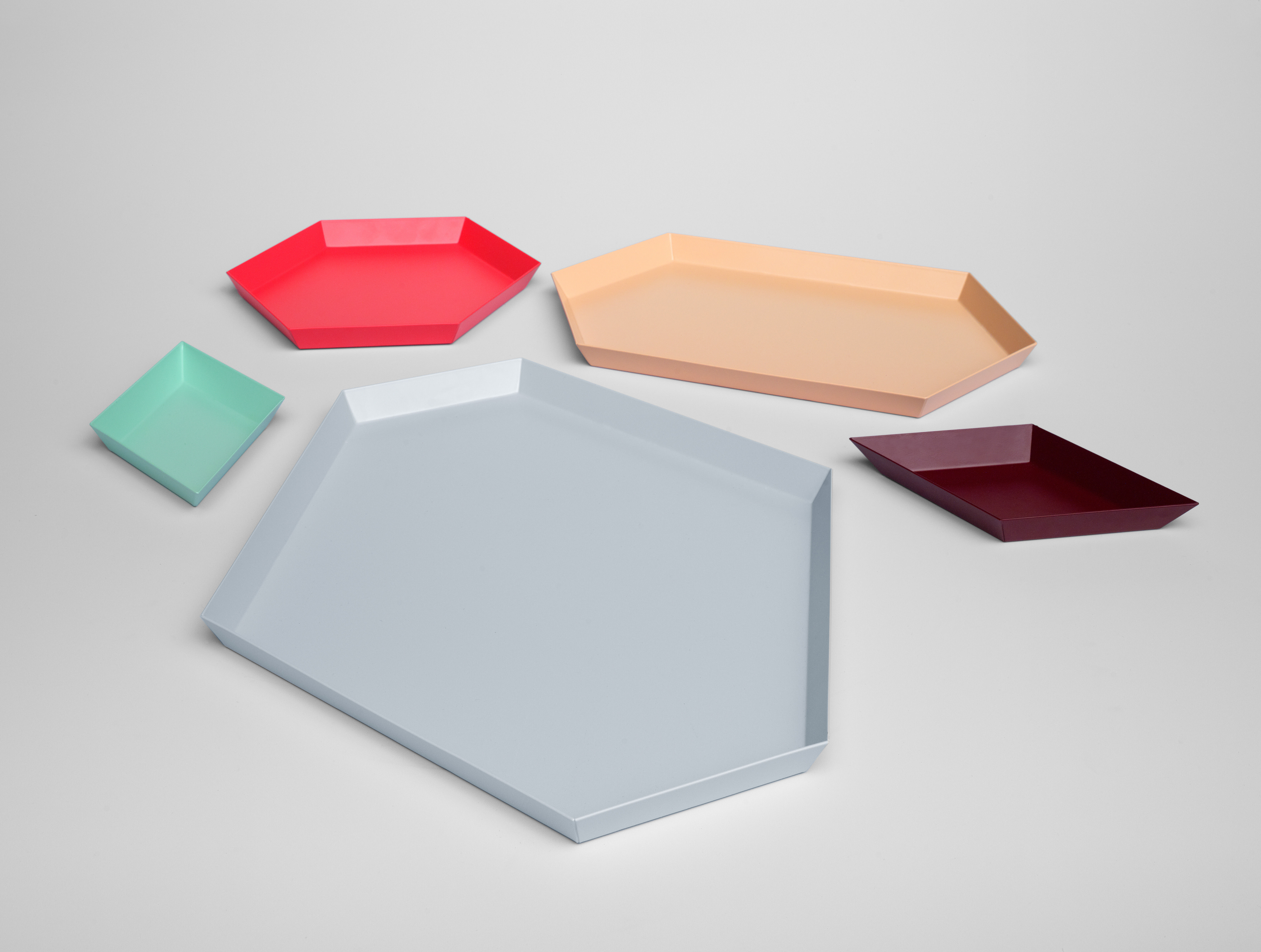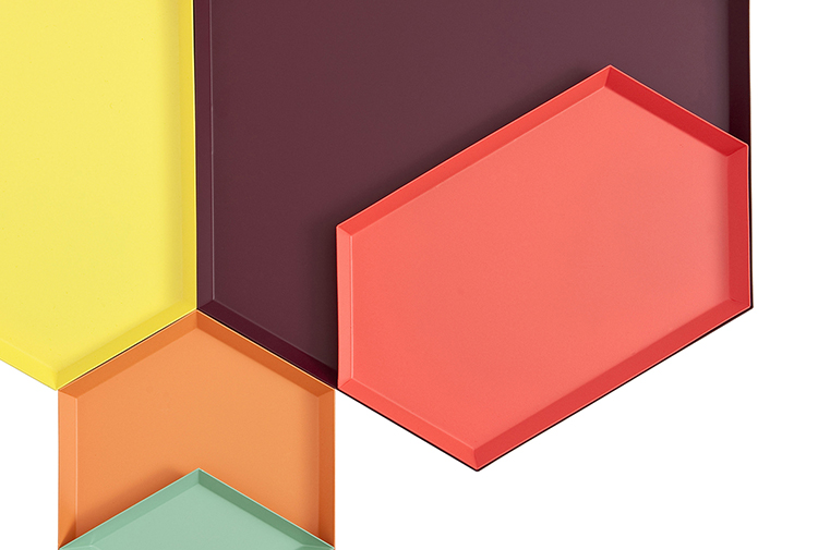 Clara von Zweigbergk的背景是一位平片设计师,这点在她的Kaleido托盘的配色上就很显而易见了。在那里她的直觉感的色彩组合体现在不同的形状和色调上。这个系列的钢制几何形状的托盘可以单独使用,或者折叠在一起储存时也可以创造出不不同的想象力组合。