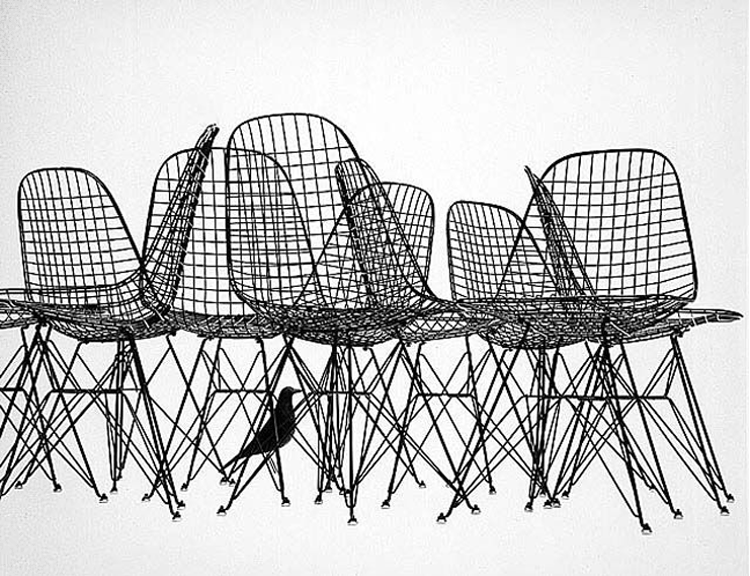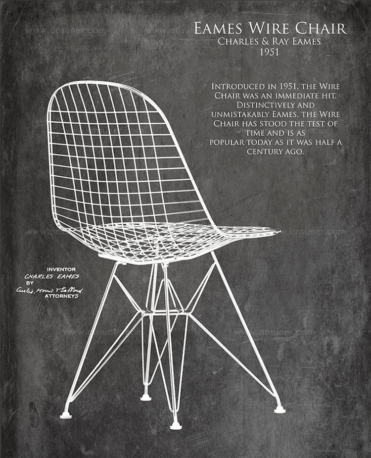 Charles & Ray Eames 1951 年發表的 Wire Chair 系列,以一片式有機網狀椅座,延伸變化出一系列不同椅腳及座墊搭配的單椅,這系列椅款輕巧透明的設計,在 60 年代可說是運用了當時最先進的技術來製作,靈感則是來自於鏤空的金屬收納籃,金屬條交織的椅座,彎曲的弧面不僅符合人體工學,在視覺上更具有穿透性。