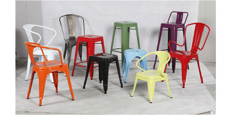 tolix chair(tolix椅)一把有味道、有态度的椅子,据说它最开始被使用在一艘战舰的天气预报房间里,故事的真实性与否不得而知,但是不影响其成为享誉世界的著名设计家具,1934年由Xavier Pauchard设计,早期是作为户外用家具设计,力图展现法式慵懒而闲适的气质,经年而来被全世界时尚设计师所宠爱,从室外扩展到家居、商业、展示等多个用途,而此椅也不负众望在各类空间中均有上佳表现,特别是近年来与混搭、乡村、美式、怀旧、北欧简约、中式等主要装修风格搭配,都呈现出独特的韵味,也被时尚界赞为“百搭第一”椅,可以用在酒吧,餐馆,咖啡馆等等地方,之后通过改进,设计出有扶手版本的tolix armchair(tolix扶手椅),高背版本的tolix high back bar stool(tolix高背吧凳),宽背版本的tolix wide back bar stool(tolix宽背吧凳),及tolix bar stool(tolix吧凳)和tolix mini stool(tolix迷你凳)。制作采用进口冷轧钢、磷酸防锈处理、静电油漆喷涂工艺、坐面为木板或PU海绵坐垫,颜色可选。