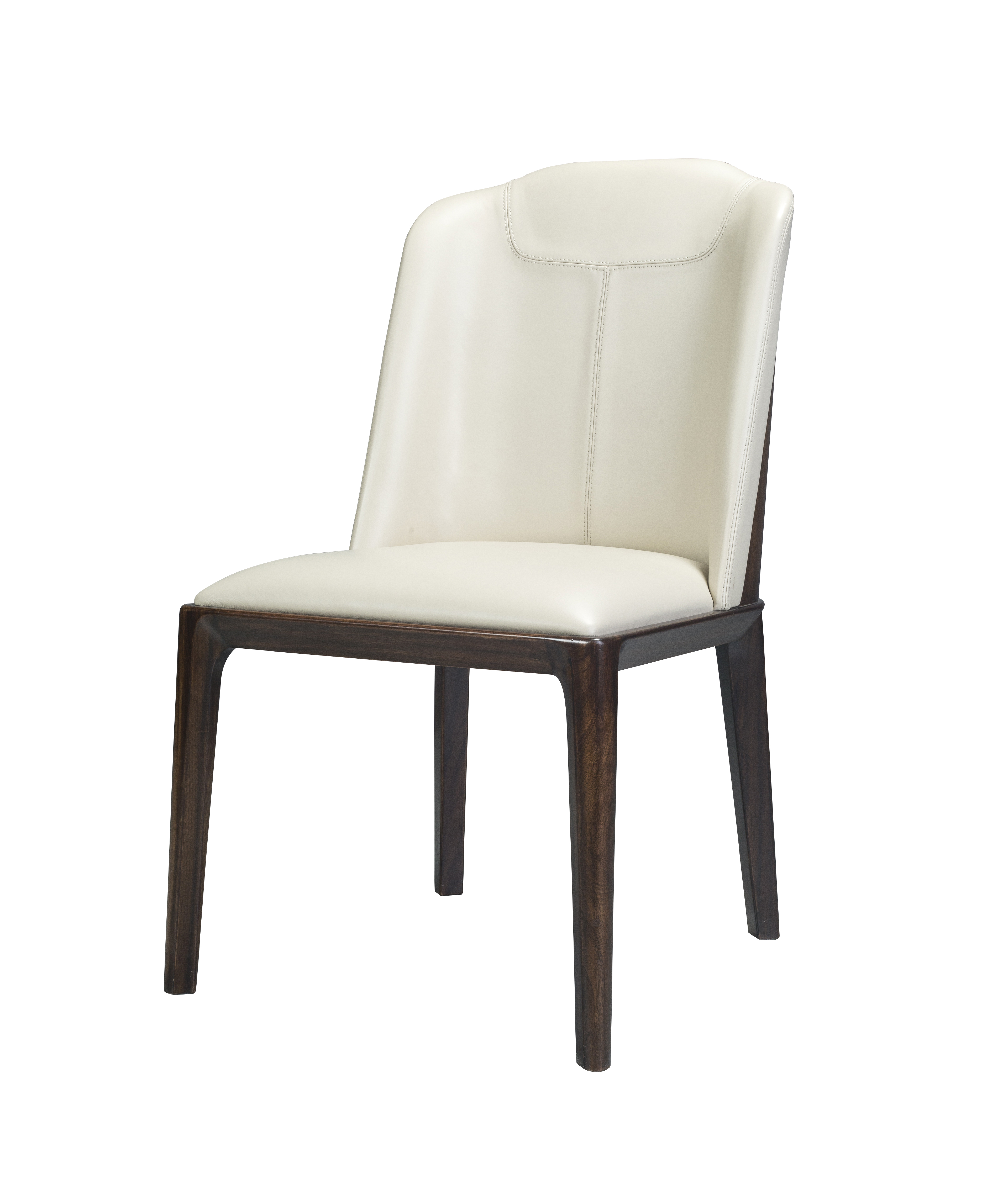 1.造型简洁,以线为主,明朗轻快。 2.腿部支撑上收下分,具有很好的视觉稳定感,稳重大方。 3.双色设计,对比明快,增加视觉跳跃感与家具层次感。 4.进口牛皮手工包饰,同时靠背曲线贴合人体工学,坐感舒适,美观耐用。