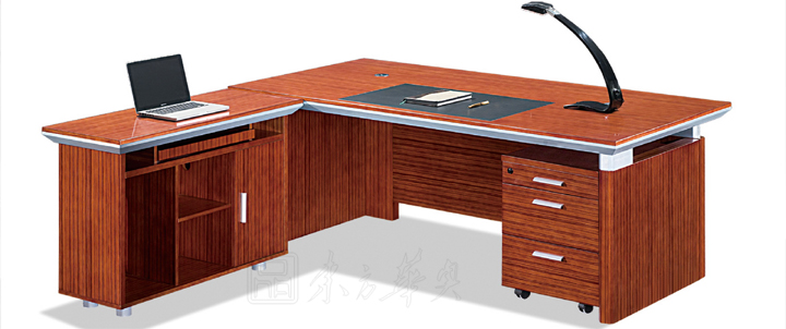 ※  此款班台木纹明晰,配以银色底漆为点缀,独特的线形设计韵含了一种灵气,使人眼前一亮,木制键盘架,机箱架,柔和了您办公时的种种所需,达到一体多功能配置,节省空间,增加使用和实用性,附助储物装置方面则备有移动式活动柜。