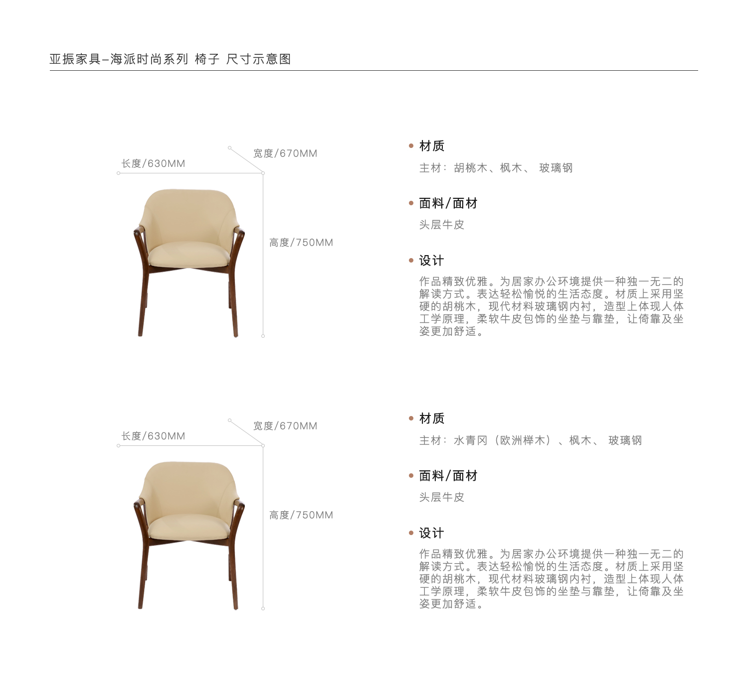 作品精致优雅。为居家办公环境提供一种独一无二的解读方式。表达轻松愉悦的生活态度。材质上采用坚硬的胡桃木,现代材料玻璃钢内衬,造型上体现人体工学原理,柔软牛皮包饰的坐垫与靠垫,让倚靠及坐姿更加舒适。