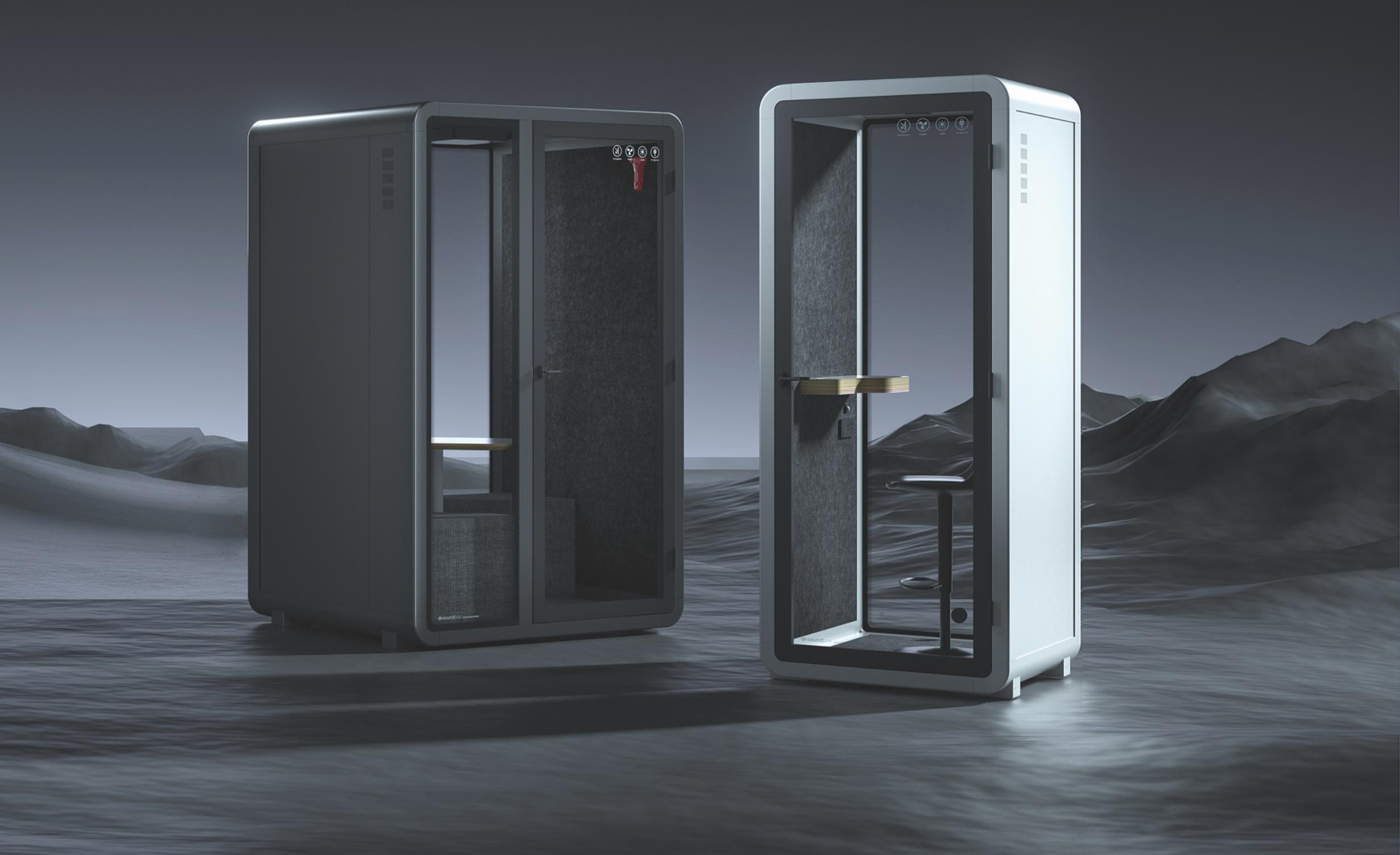 一个灵动的安静空间,满足您无限创想不传统的碳塑复合板、航空铝、隔声玻璃是它的主要组成,SOLIDWORKS软体力学建模让仓体组装仅需一种紧扣件,INSULMARSHALL ACOUSTIC 声学模拟设计准确预知并实现了舱体隔音和舱室音环境指标,它是一个强大,尽管它不是最完美的迷你空间,仓体采用可循环碳塑再生材料 SR系列 静音仓推崇低碳、简约、安全、实用主义优化非必要的功能和配置。从薄的全R角外观和互雅配色让它更精致、融入环境。