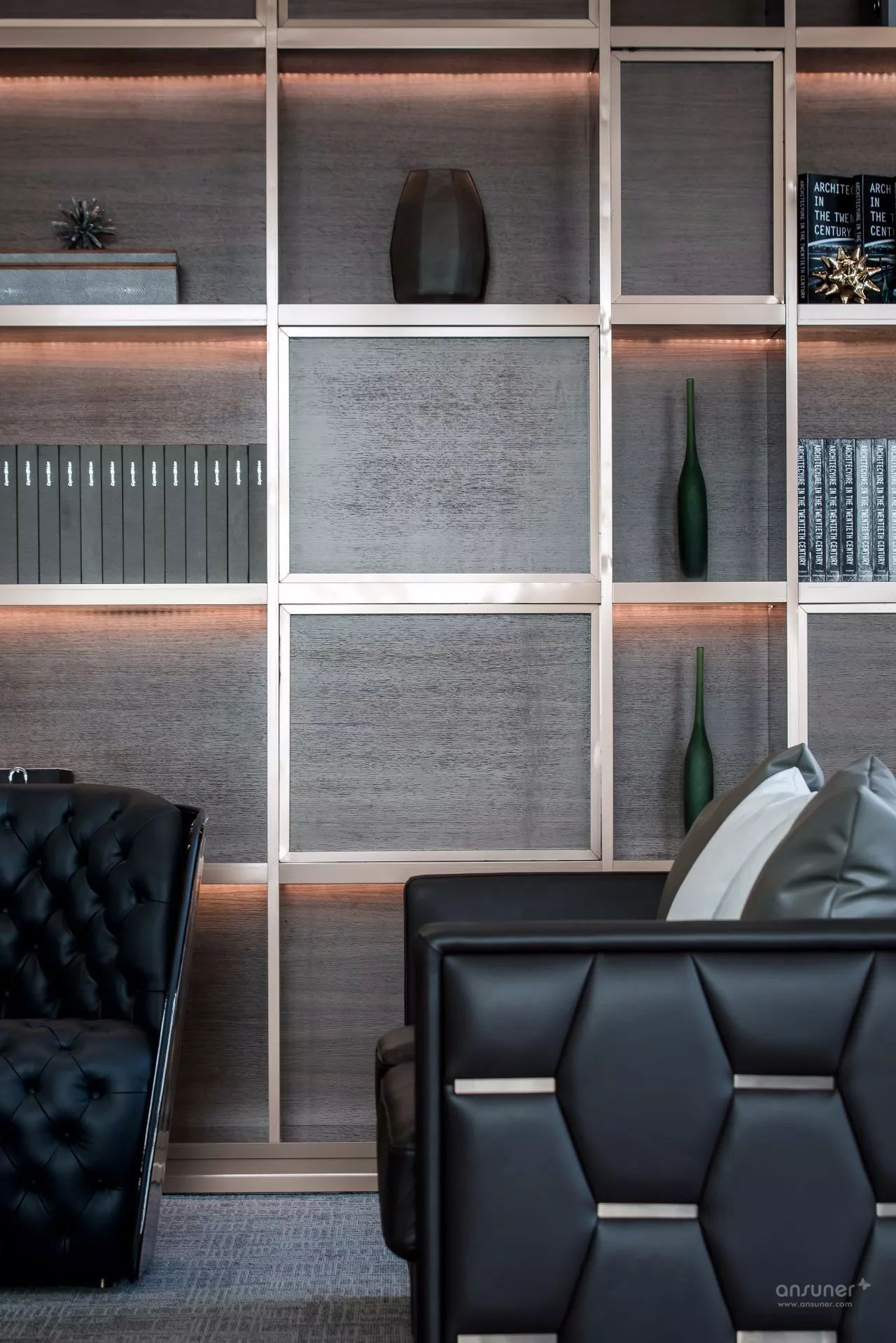 临江美景尽人眼帘,以书架进行自然切换,不同质地、色彩的座椅、沙发的组合不再强调位序,体现平等沟通、自然协作,以满足各种会议形式的需求,完成从我到我们的弹性交互。