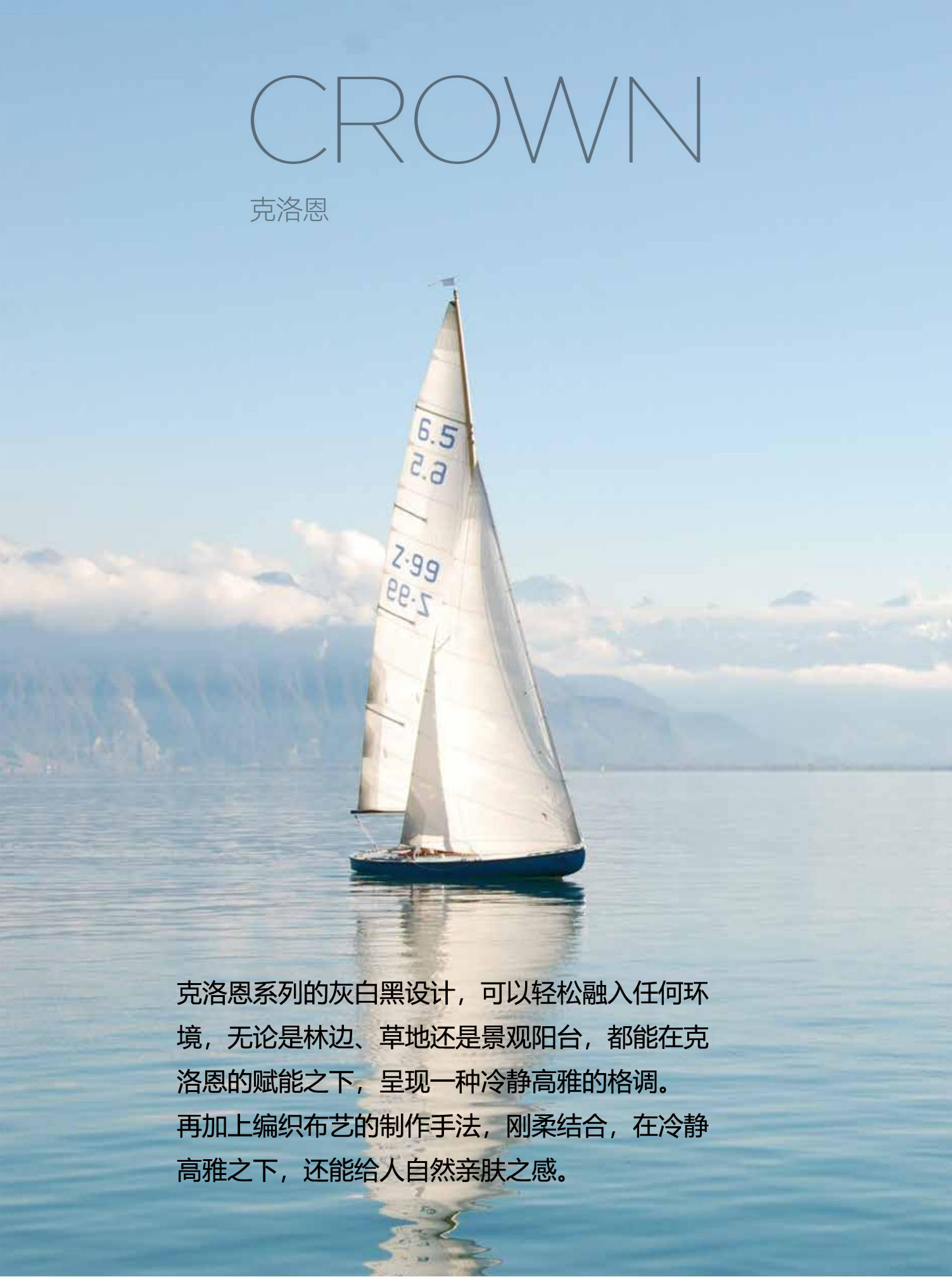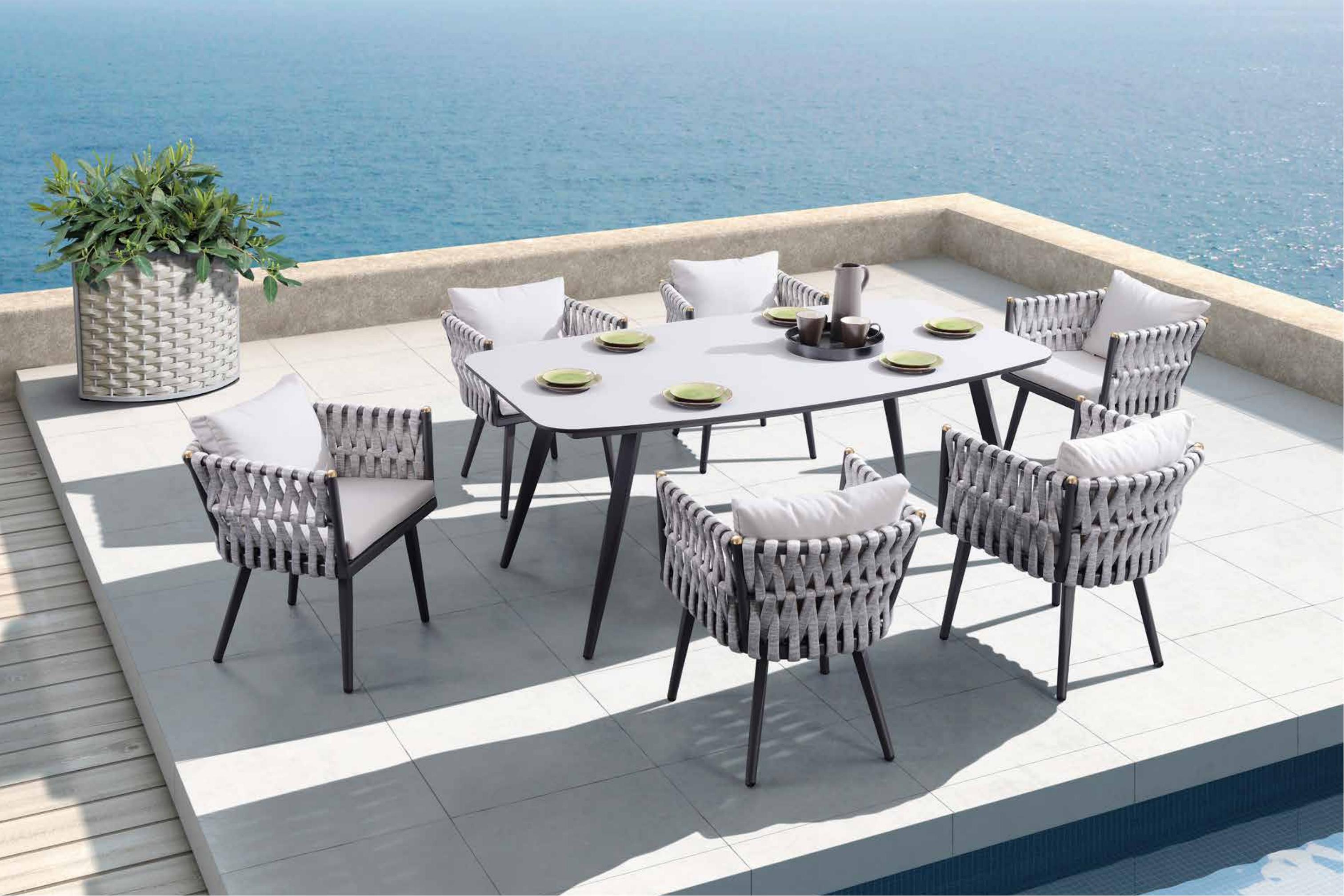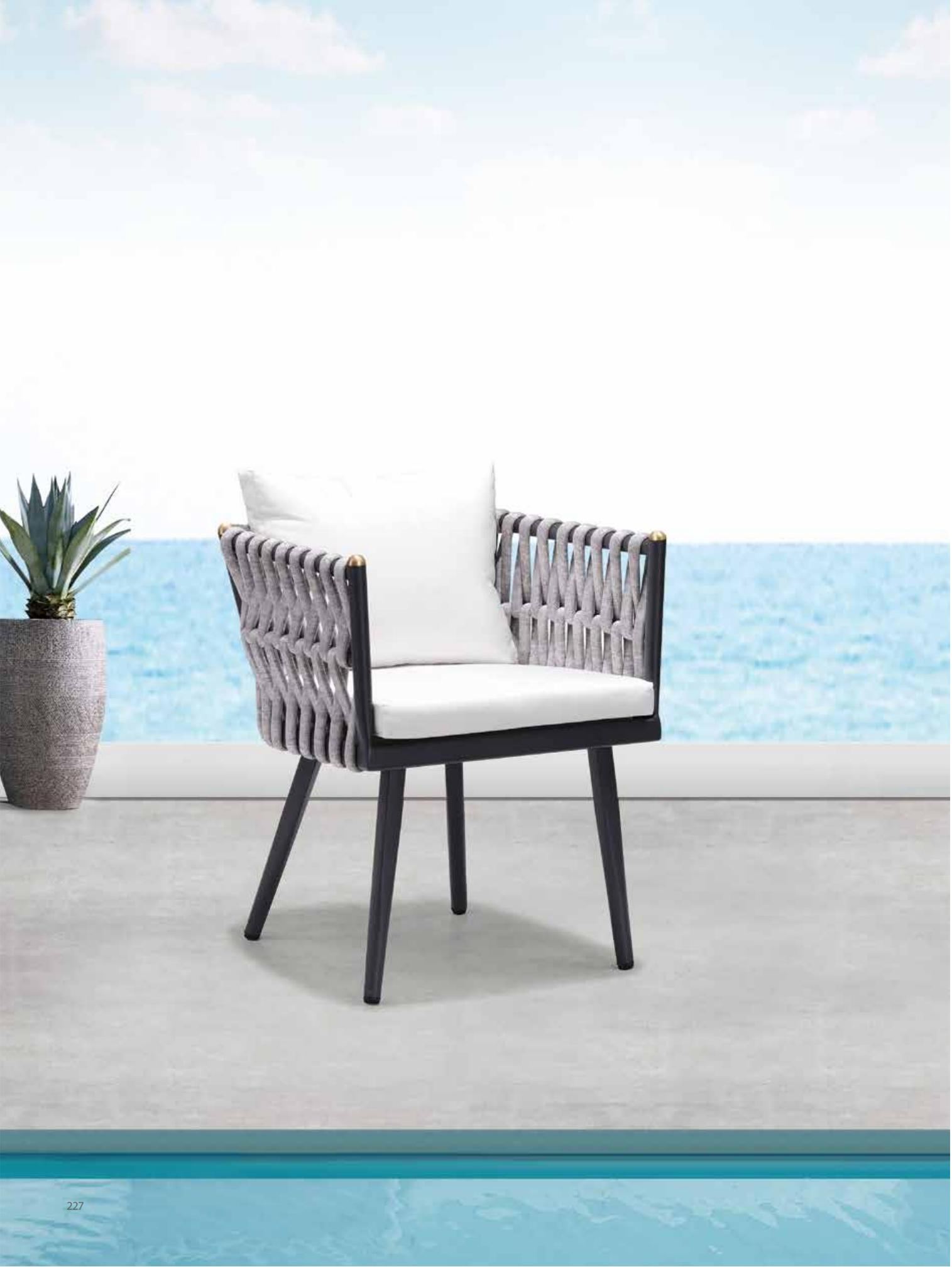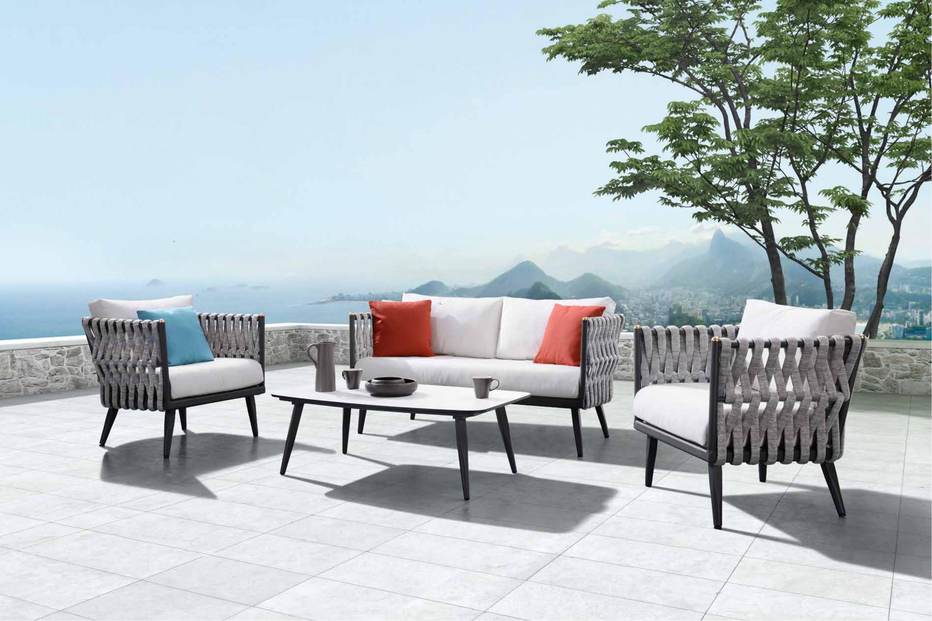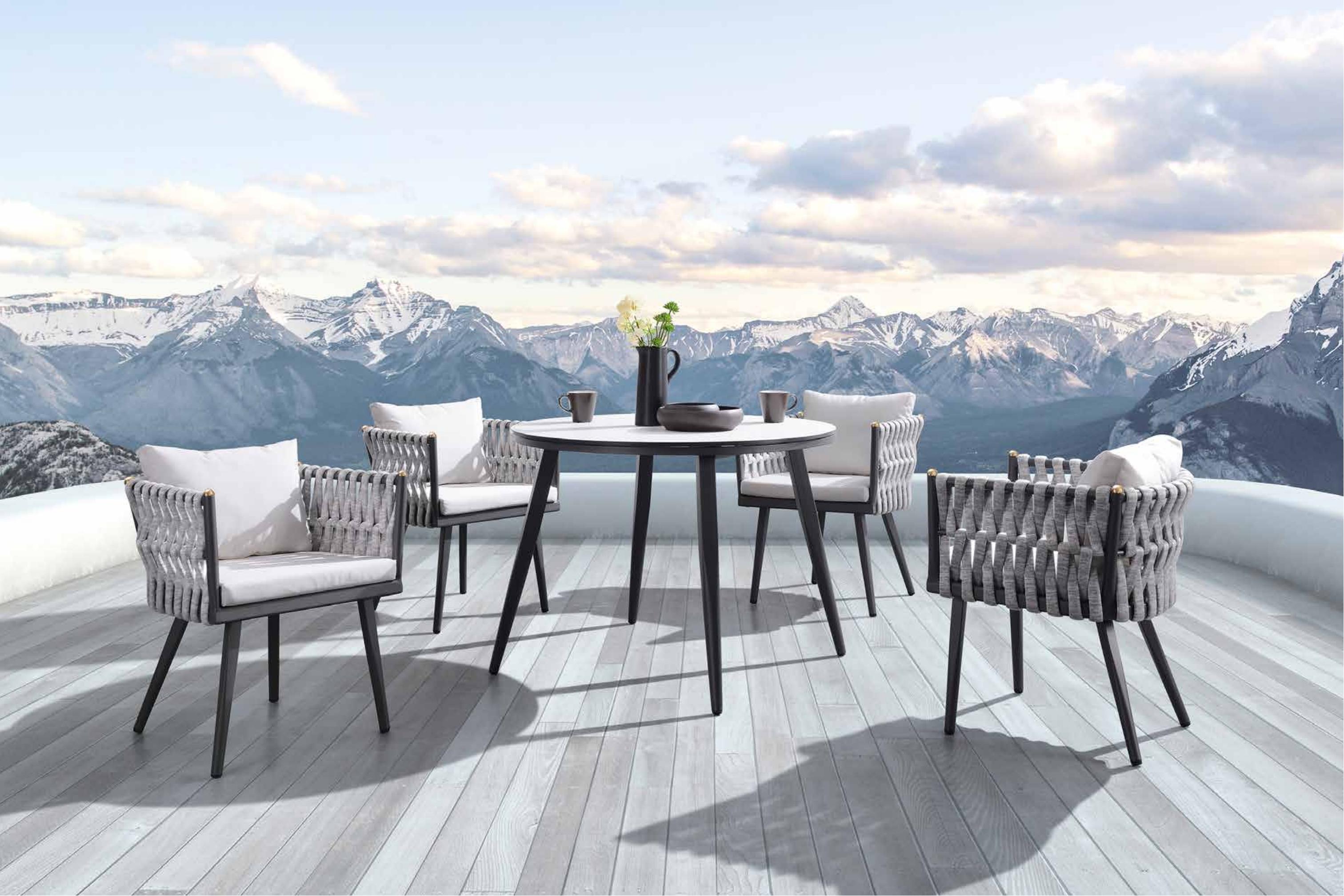 克洛恩户外休闲系列的灰白黑设计,可以轻松融入任何环境,无论是林边、草地还是景观阳台,都能在克洛恩的赋能之下,呈现一种冷静高雅的格调。再加上编织布艺的制作手法,刚柔结合,在冷静高雅之下,还能给人自然亲肤之感。