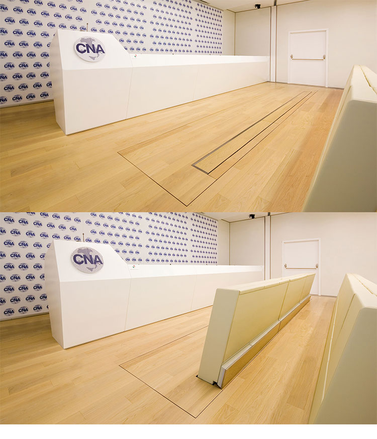 1. 椅背:采用进海绵原料+"S"型弹簧钢架经模具冷发泡一体成型,外型按人体工程学原理设计,坐感舒适。整个海绵弹性高,无异味,甲醛释放量控制标准达到国际先进水平。 2. 椅座:采用海绵原料+"S"型弹簧钢架+中纤板经模具冷发泡一体成型,外型按人体工程学原理设计,坐感舒适。整个海绵弹性高,无异味,甲醛释放量控制标准达到国际先进水平。 3. 背外板:采用中纤板制作成型,面覆优质PCV或布料。 4. 侧板:采用中纤板制作成型,面覆优质PCV或布料。 5. 站脚:采用钢管、钢板切割焊接成型,后经喷涂处理。 6. 扶手:采用海绵原料+五金件+木结构经模具冷发泡一体成型。 7. 面料:采用PVC或布料。 8. 回复机构:采用气缸缓起立回复机构,扶手、椅座连动回复节约通道,以保证回复无故障、无噪声、经久耐用。 9. 地爆螺丝:采用不锈钢内六角膨胀螺丝。