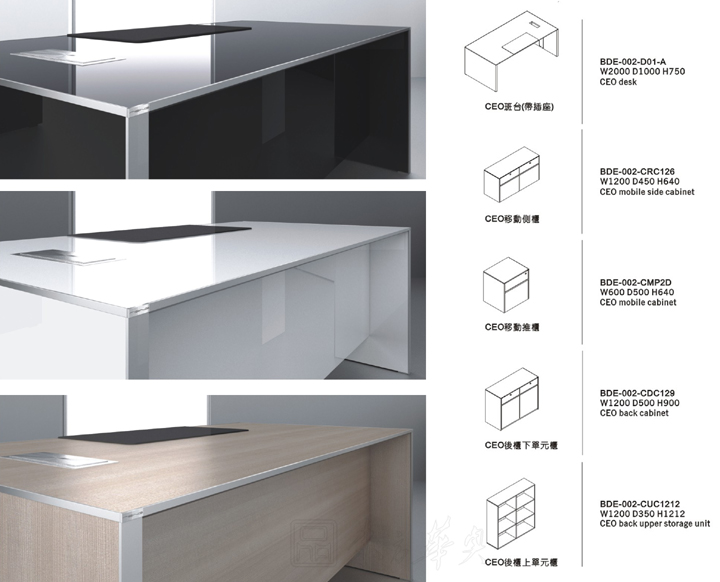 CEO办公台的外观设计倾向于传统,注重的是工艺,金属与木及各部件之间的完美衔接挑战着制造的精准,简约的外观中蕴含着丰富的内在。